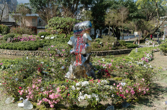 他以充滿童趣的筆觸賦予杜鵑花朵鮮活生命,描繪花兒們在春天,從萬金豐沃的土地中破壤而出,猶如花精靈般,攜手歡喜迎接新的一年;花朵們一起奮力向著天空,取其意象象徵著讓杜鵑走出萬金,讓消費者將杜鵑花精靈帶回家,提升大眾與萬金杜鵑無距離的接觸,也提升大眾對杜鵑花的認識與喜愛,貼切的體現今年萬金杜鵑主題「一起出花」的美好涵義。